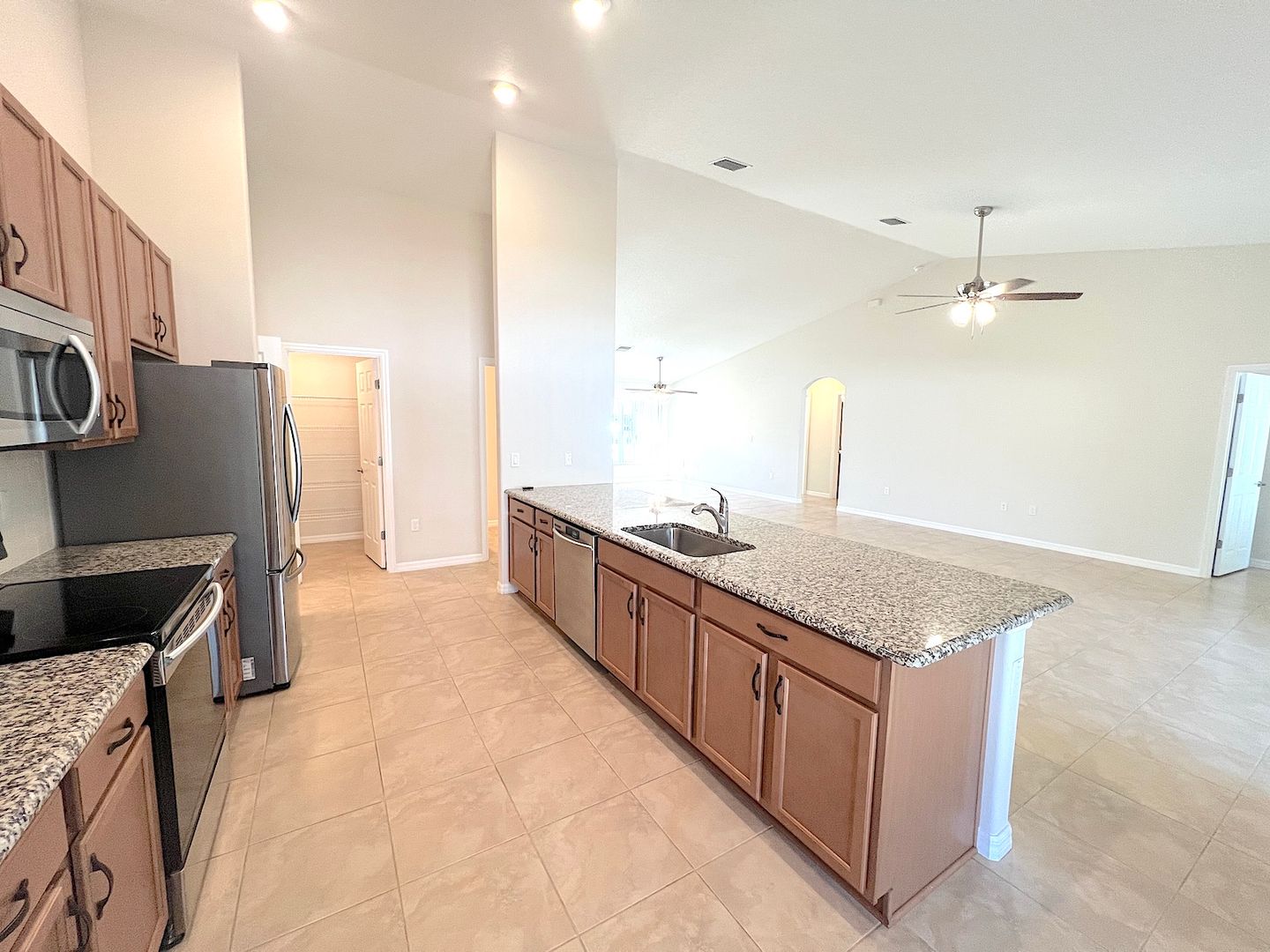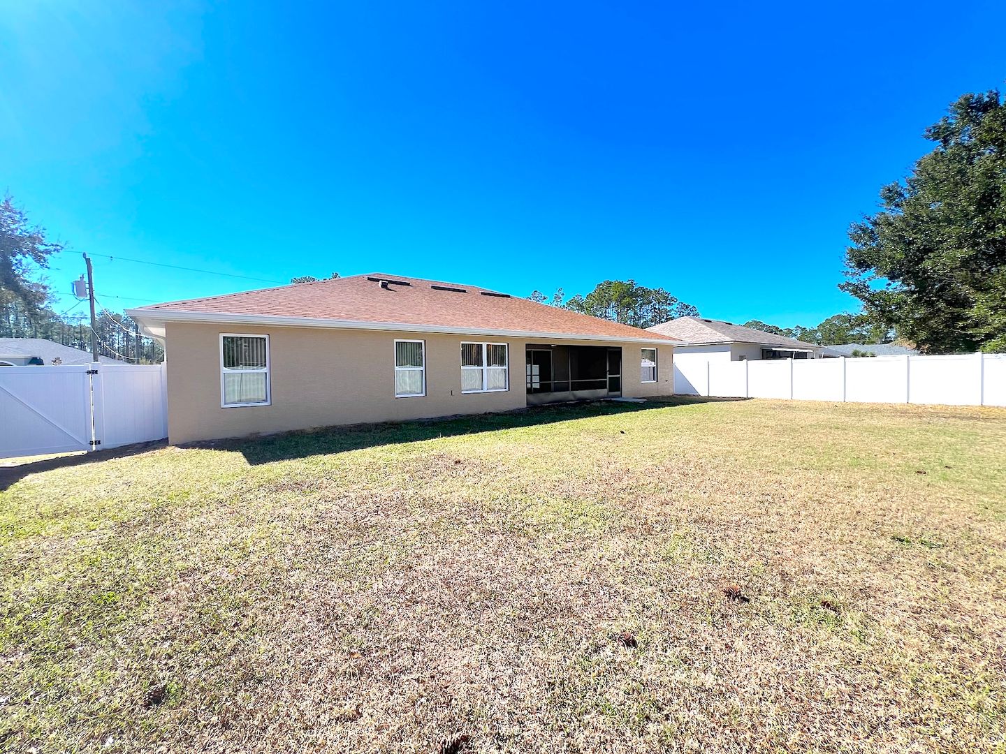 Spacious 4 Bedroom 2.5 Bathroom Home for Rent with Fenced Yard for Rent in Palm Coast FL! Built in 2021, this gorgeous home features high ceilings, granite counters, stainless appliances, ample cabinetry in the kitchen, tile flooring throughout, ceiling fans, and much more! The split bedroom plan provides for privacy, and the layout features a formal dining area and breakfast nook. The home features plentiful closet space. Exit the living area slider to a roomy screened and covered lanai, overlooking the huge and FULLY FENCED IN back yard! Central located, this rental is close to shopping, entertainment, schools, Town Center, parks, houses of worship and everything Palm Coast offers. Easy access to the main roadways provides for a quick commute to both St Augustine and Daytona, and a speedy drive to the local beaches. Apply today! LBTR#13922
